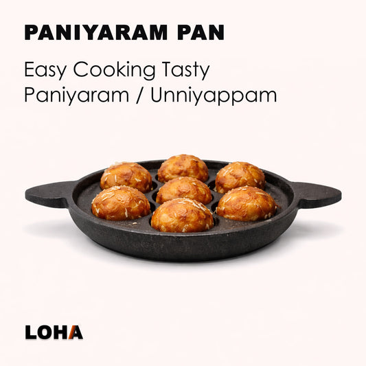 Loha Cast Iron Paniyaram Pan | Heavy Duty Build | Gas & Induction Compatible