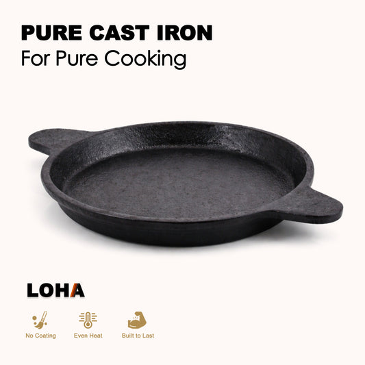 Loha Cast Iron Dosa Tawa | Pre-Seasoned Flat Pan | 9 Inch
