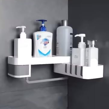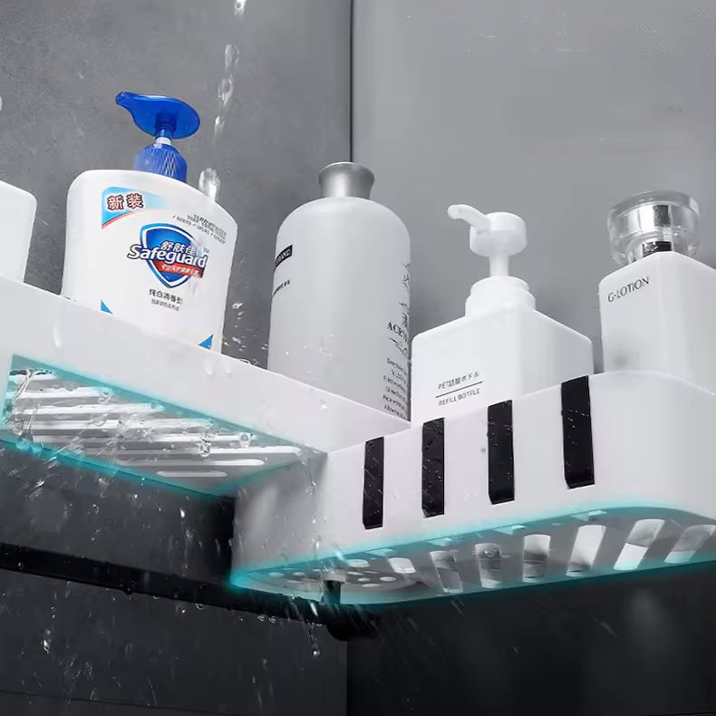 Pebble PVC Self-Adhesive Bathroom Shelf: Versatile for Bathroom & Kitchen | Corner Shelf Option Included