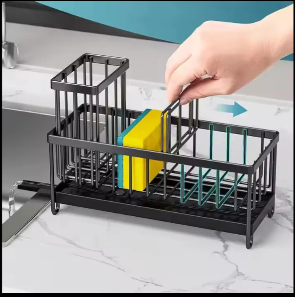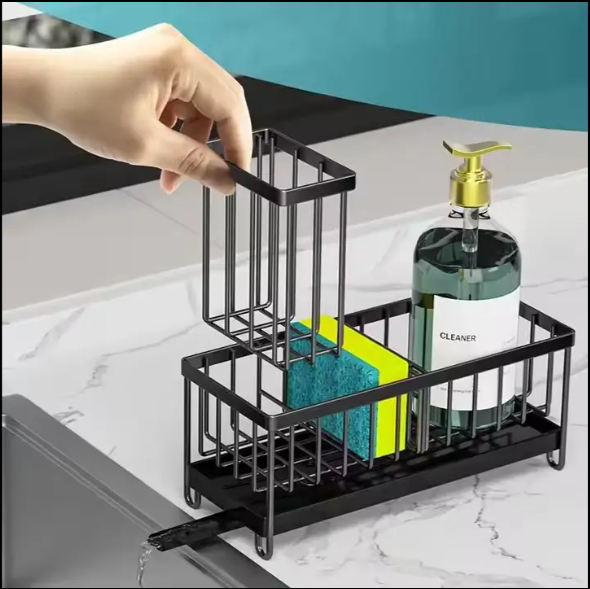 Keep your kitchen and bathroom tidy with this Sink Organizer. It features a sloping drain tray to keep countertops dry and stores sponges, brushes, and soap within easy reach. Made with durable, rust-proof material, it’s compact, space-saving, and perfect for sinks, counters, or washstands.