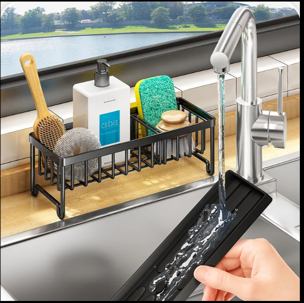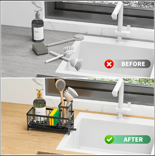 Sink Organizer – Keeps Countertops Dry, Stores Sponges, Soap, and Brushes, Perfect for Kitchen and Bathroom Use